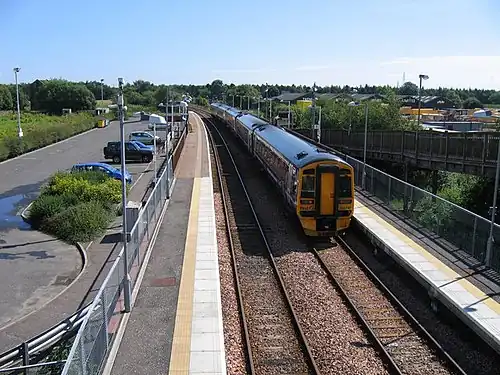 Glenrothes with Thornton railway station is located in Thornton in Fife, Scotland. It serves the communities of Thornton and Glenrothes. The station is managed by ScotRail and is on the Fife Circle Line, 31+1⁄4 miles (50.3 km) north of Edinburgh Waverley.