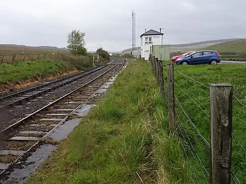 The station opened on 5 October 1877 by the Girvan and Portpatrick Junction Railway. On the southbound platform was the signal box, which was replaced in 1905. The second platform was added in 1937. To the east was a siding which served a cattle pen. The station closed on 7 February 1882 but reopened nine days later on 16 February 1882. It closed again on 12 April 1886, reopened on 14 June 1886 and finally closed on 6 September 1965.[1][2] In 2023, the signal box and passing loop are still in use.