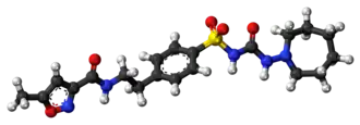 - ^ Haupt E, Köberich W, Beyer J, Schöffling K (December 1971). "Pharmacodynamic aspects of tolbutamide, glibenclamide, glibornuride and glisoxepide. I. Dose response relations and repeated administration in diabetic subjects". Diabetologia. 7 (6): 449–54. doi:10.1007/bf01212061. PMID 5004178.