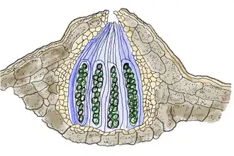 Plural ascogonia. The cell or group of cells within an ascocarp from which the asci (spore-producing cells) ultimately develop.[50]