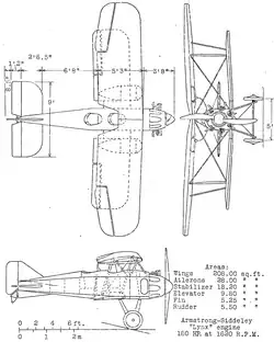 - Powerplant: 1 × Armstrong Siddeley Lynx 7-cylinder air-cooled radial piston engine, 185 hp (138 kW)