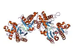 - ^ MacKenzie RE, Aldridge M, Paquin J (10 October 1980). "The bifunctional enzyme formiminotransferase-cyclodeaminase is a tetramer of dimers". J. Biol. Chem. 255 (19): 9474–8. doi:10.1016/S0021-9258(19)70586-9. PMID 7410436.