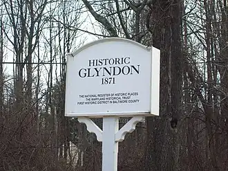 2. ^ Rodd L. Wheaton and Nancy Miller (n.d.). "National Register of Historic Places Registration: Glyndon Historic District" (PDF). Maryland Historical Trust. Retrieved March 1, 2016.