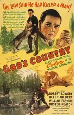 God's Country is a 1946 Western movie directed by Robert Emmett Tansey and featuring Robert Lowery, Helen Gilbert and Buster Keaton. It is a low-budget color B Western set in the contemporary American West.[1]
