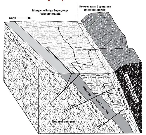 1. ^ a b c Aldrich, Henry (1929). The Geology of the Gogebic Iron Range of Wisconsin. State of Wisconsin. p. 5.