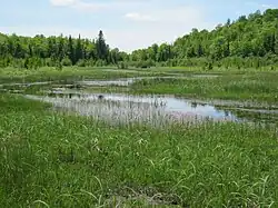 With metals trading at unprecedented prices during the early 2010s commodity bubble, companies again explored the possibilities of mining in the Gogebic Range to extract remaining, lower-quality ore.[3] The lower-grade Taconite ore of interest was located in the western portion of the Gogebic Range in Wisconsin. Since the closure of the previous mines in the 1960s, the railroads serving the mining region were mostly abandoned and converted to rail trails. Unless lines could be reconstructed (at considerable expense), transportation would have to be by road, which would greatly limit the scope of any proposed mining project. Resumption of mining was generally not considered profitable, and concerns about the health and environmental impact to the region and Lake Superior resulting from the proposed massive miles-long open pit iron mines, associated industrial ore processing facilities, and crushed waste rock tailings disposal created much controversy among area residents and the Bad River Band of the Lake Superior Tribe of Chippewa Indians. Major areas of concern related to the proposed mining activities included the presence of extensive pristine wetlands that would be destroyed, the potential of acid mine drainage water pollution from iron sulfide present in the bedrock, the release of hazardous, carcinogenic airborne asbestos-like amphibole fibers from the blasting, crushing, transport, and processing of grunerite rock (containing asbestiform minerals) documented to be present in the bedrock, loss of forest and hunting land, and the industrialization of one of the most scenic undeveloped areas in Wisconsin.