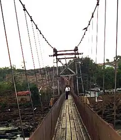 After a long, winding course, the Ghataprabha river falls 52 metres (171 ft) over the sandstone cliff amidst a picturesque gorge of the rugged valley. At the crest, the horseshoe-shaped waterfall has a flood breadth of 177 metres (581 ft). It also has a suspension bridge which is an attraction for people visiting Gokak.
