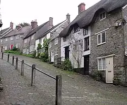 Gold Hill is a steep cobbled street in the town of Shaftesbury in the English county of Dorset. The view looking down from the top of the street has been described as "one of the most romantic sights in England."[1]