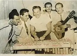 In Mexico, the film noir genre popular in Hollywood in the 1930s and 1940s was represented by the actor and director Juan Orol. Inspired by popular gangster films and figures such as Humphrey Bogart and Edward G. Robinson, Orol created a distinctive filmic universe by mixing elements of classic film noir with Mexican folklore, urban environments, moral ambiguity, and existential crises.[9] Notable examples include Gangsters Versus Cowboys (1948), Emilio Fernández's En la palma de tu mano (1951), and Roberto Gavaldón's La noche avanza (1952).