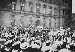 She then travelled by train from Windsor station to Paddington then to Buckingham Palace for a lunch.[5] In the evening, there was a banquet, which fifty foreign kings and princes, along with the governing heads of Britain's overseas colonies and dominions, attended. She wrote in her diary:[9]