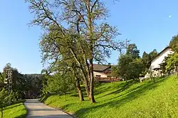 The local church on Mount Saint Nicholas (Slovene: Miklavška gora) above the settlement is dedicated to Saint Nicholas. It is an easy climb and is a popular destination with day-trippers and hikers.[3]