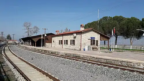 Goncalı railway station (Turkish: Goncalı istasyonu) is a railway station in the village of Goncali, Turkey. Located about 9 km (5.6 mi) northwest of Denizli, the station is also a junction where the Goncalı-Denizli railway splits off from the İzmir-Eğirdir railway. TCDD Taşımacılık operates a daily inter-city train from Denizli to Eskişehir, as well as regional train service to İzmir and Söke.[2] Goncalı station was opened on 13 October 1889 by the Ottoman Railway Company.[3]