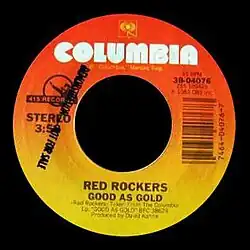 Good as Gold is the second full-length album from Red Rockers, released in 1983 on Columbia/415. It contained the single "China" which peaked at number 53 on the Billboard Hot 100.[2][3] Other singles from the album were "Til It All Falls Down" and the title track, "Good as Gold". The music video for the song "Good as Gold" was filmed at the Alamo Village - the same location where John Wayne shot the film, The Alamo.[4]