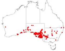 Spur velleia usually grows in mallee or grassland and rocky sites, in all states of Australia, except Tasmania and the Northern Territory.[2][3][4]
