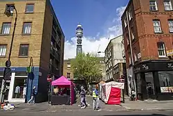 In 1878 Walford writes that the market was on the south-side of the street and busiest on Friday and Saturday evenings, when most people were paid. He describes it is one of the last street markets in and around the West End of London and doubted it would survive long.[4] Survival owed much to the area's retention of a working and lower-middle class population. This happened to a greater degree than in most neighbouring districts, meaning the area had more in common with areas to the north, than prosperous West End neighbours like Marylebone and Bloomsbury.