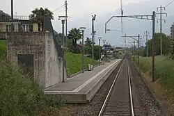 Gordola railway station (Italian: Stazione di Gordola) is a railway station in the municipality of Gordola, in the Swiss canton of Ticino. It is an intermediate stop on the standard gauge Giubiasco–Locarno line of Swiss Federal Railways.[3] The present station was rebuilt in 2019, with a new platform 200 metres (660 ft) east of the old station.[4]
