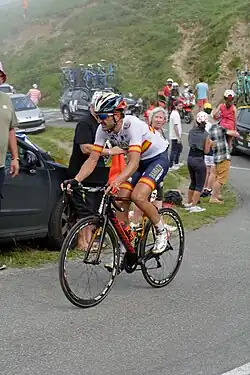 Izagirre signed with the Bahrain–Merida team for the 2018 season.[4] He started off the season with 7th overall at Tour Down Under, and then took 3rd place overall at the Tour of Oman.[16] He was captain of the Bahrain–Merida team together with his brother Ion Izagirre at Paris–Nice. They attacked on the downhill on the last stage and the brothers looked to finish 1st and 2nd but they both crashed in a turn on the downhill section, meaning their bikes tangled together. They lost their advantage and Gorka finished 3rd overall. In late June, Izagirre finished 2nd in the Spanish National Time Trial Championships,[17] and days later he won the Spanish National Road Race Championships.[18] Going into the Tour de France, Izagirre was a domestique for team captain Vincenzo Nibali, however Nibali went out of the race on stage 13, meaning Izagirre had the chance to hunt stage wins. He managed to get into the breakaway on stage 16 and finished 2nd on the stage, 15 seconds down on stage winner Julian Alaphilippe.