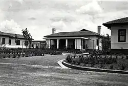 One of the early residents was Astley Pulver, a young surveyor employed by.the Survey Office in the Engineering Branch. He arrived in April 1925 and was met by one of his fellow employees at Queanbeyan Station. He says that after crossing the newly completed Commonwealth Avenue Bridge his driver pointed out Parliament House which at this time had only ground level foundations. A little way further was the Hotel Canberra with only the centre block and the two front wings completed.[5] They then went to his new home Gorman House. He took several photos of the hostel while he was a resident one of which is shown.