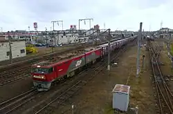 Hakodate Freight Terminal (函館貨物駅, Hakodate Kamotsu-eki) operated by Japan Freight Railway Company (JR Freight) is located next to the passenger station and was previously called Goryōkaku until it was renamed on March 12, 2011.[2]