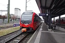 Gossau SG railway station (German: Bahnhof Gossau SG) is a railway station in Gossau, in the Swiss canton of St. Gallen. It is an intermediate station on the St. Gallen–Winterthur line and the terminus of the Sulgen–Gossau and 1,000 mm (3 ft 3+3⁄8 in) metre gauge Gossau–Wasserauen lines.[1]