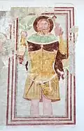 The local church is dedicated to Saint Andrew. The exterior features several frescoes,[2] including a 14th-century depiction of Saint Christopher.[3]