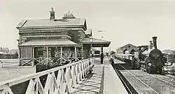 The station complex includes a type 5 first-class brick station building on Platform 1, completed in 1869, and a type 11, initial island/side building of thirteen bays on the island platform 2 and 3, completed in 1915. Brick refreshment rooms, also completed in 1915, form part of the island platform station building. A brick two-storey signal box with a gable roof was completed in the 1970s.[4]