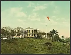 Government House was seriously affected by the hurricane of 1929. As a history recounts, "[T]he eastern wing of the Government House was unroofed on three sides and damaged to the extent that it was not fit for occupancy so major repair work had to be done to the roof and buildings".[10] This restoration work, which included the removal of the original gallery and its replacement by the current temple-like entrance and cupola-topped roof, was completed in 1932.[11][6]