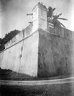 In 1513, the Portuguese were the first Europeans to land on Ambon Island, and it became the new centre for Portuguese activities in Maluku following their expulsion from Ternate.[2] The Portuguese, however, were regularly attacked by native Muslims on the island's northern coast, in particular Hitu, which had trading and religious links with major port cities on Java's north coast. They established a factory in 1521, but did not obtain peaceable possession of it until 1580. Indeed, the Portuguese never managed to control the local trade in spices, and failed in attempts to establish their authority over the Banda Islands, the nearby centre of nutmeg production. The creole trade language Portugis however was spoken well into the 19th century and many families still have Portuguese names and claim Portuguese ancestry.[3]