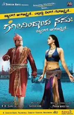 Govindaya Namaha (transl. Hail Govinda) is a 2012 Indian Kannada language comedy drama film directed by debutante Pawan Wadeyar. The film was released on 30 March 2012 across cinema halls. It stars Komal Kumar, Anna Georgia, Madhulika, Rekha Vedavyas and Parul Yadav in the lead roles.[2] The music is composed by Gurukiran. This film is remade as Potugadu in Telugu. The movie was accused to be a copy of 2006 Kannada movie Avnandre Avne. However Karnataka Film Directors Association writer's wing set aside the allegations as far from truth.[3][4]