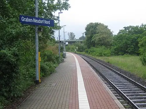 Graben-Neudorf Nord station is a railway station in the municipality of Graben-Neudorf, located in the Karlsruhe district in Baden-Württemberg, Germany.