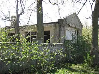 Mansion in Grabowo Królewskie is the ruins of a building from the interwar period, located in Grabowo Królewskie, part of Greater Poland Voivodeship. The mansion in Grabowo Krolewskie was built in 1928. It was entered into the registry of monuments in 1998. The mansion belonged to the owner of the village, Witold Wilkoszewski (November 22, 1881 - April 17, 1937). After World War II, it housed a lounge and a library. The manor house was surrounded by a garden. In his area, he placed concrete and plaster figurines of saints, farmers, and cupids. In 1928, the park was surrounded by a fence with gates.
