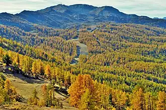 The Gran Bosco di Salbertrand Natural Park (Italian: Parco naturale del Gran Bosco di Salbertrand) is a nature reserve in Piedmont, Italy. Established in 1980, it protects the Site of Community Importance of the Great Woods of Salbertrand (Gran Bosco di Salbertrand), in the Val Susa, south of the Dora Riparia, between 1,000 and 2,700 meters above sea level. The woods, which cover an area of about eight hundred acres, consist of a mix of silver firs and Norway spruces, rarely found in the Western Alps.[2][3][4][5]
