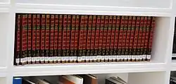 Volumes of the Gran Enciclopedia Galega in the Library of Galicia.