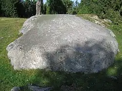 The Granby Runestone has a runic inscription carved on a boulder consisting of a memorial to a father, a mother and some other people. The father Finnvid's property is mentioned. Some of these family members are mentioned on the inscriptions on other local runestones. Kalfr is mentioned on inscriptions U 338 and U 341, which are located in Söderby, and on U 342, which is also located in Granby, and Ragnfríðr is mentioned on U 338.[1]