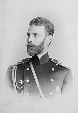 Grand Duke Sergei Alexandrovich of Russia (Russian: Сергей Александрович; 11 May 1857 – 17 February 1905) was the fifth son and seventh child of Emperor Alexander II of Russia. He was an influential figure during the reigns of his brother Emperor Alexander III of Russia and his nephew Emperor Nicholas II, who was also his brother-in-law through Sergei's marriage to Elisabeth, the sister of Empress Alexandra.[1]