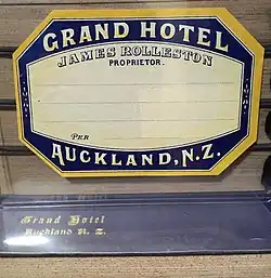 The Grand Hotel, at 9 Princes Street, was the leading hotel of Auckland, New Zealand, from 1889 until 1966. With its vaulted ceilings, ornate mantelpieces, and red carpet, the Grand Hotel was a plush and social rendezvous from its opening. The Grand Hotel reopened in 1967/8 as the 'Grand Building' fitted out as offices. The leading hotels of Auckland were in the following order: The Grand Hotel, Princes St (closed 1966), the Central Hotel, Victoria St (closed 1972), the Star Hotel, Albert St (closed 1973), the Royal Hotel, Elliot St (closed 1980s) and the Albert Hotel, Queen St. Consequently, the Grand Hotel facade is the last surviving of the large Victorian- and Edwardian-era hotels in Auckland.