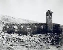 The site originally housed a mosque, which was built during the Umayyad Caliphate in the 7th century CE, on the site of an older Byzantine basilica.[2] The identification is owed to the round arches of the original mosque's portals, which are similar to the construction technique of the Umayyad Mosque in Damascus and the Umayyad mosques of Bosra and Qasr al-Hallabat.[3][2] Hence, it was called an Omari mosque.[4]