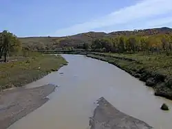 The Grand River (Lakota: Čhaŋšúška Wakpá[4]) is a tributary of the Missouri River in South Dakota in the United States. The length of the combined branch is 110 mi (177 km). With its longest fork, its length is approximately 200 mi (320 km).