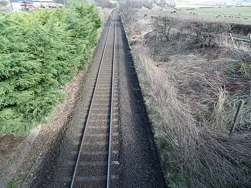 The station was located on a double-track section of the line and had a brick built platform with concrete edging.[7] One overgrown platform still exists and the line has been singled.
