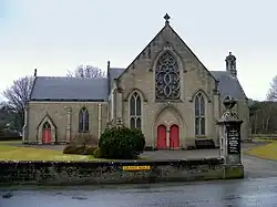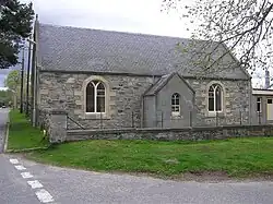 Inverallan Parish Church (Church of Scotland) is located on Mossie Road.[43] The current Inverallan Church was rebuilt on the site of several earlier churches to a design by the architect Alexander Smith Cullen in 1886.[44][45][7] The rebuilding was funded by Caroline Stuart, Countess of Seafield as a memorial to the death of her husband and son.[44] The church is in Victorian Gothic in style and set out in a cruciform shape.[44] The church incorporates details from the previous churches on the site, including carvings and woodwork from the 17th century.[44]