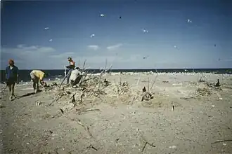 ![]() Ecological Services crew banding on Gravel Island, 1988 | |