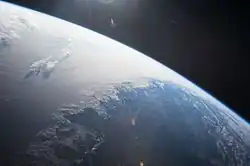 Cuarón wanted to do long takes, in part because the producers wanted to film it like an IMAX-style Discovery Channel documentary.[18] However, the long takes are deceptive as 'invisible cuts' were utilised to stitch shots together during editing.[69] As with his previous films, Emmanuel Lubezki did not use prior footage as the starting point of his work on Gravity. Instead, he carried out a search of images from NASA and Roscosmos. He and his team put together a large collection of photographs and picked what was best for the film.[70] Lubezki said that they based the visuals on descriptions from astronauts, with some artistic license in depicting how the stars looked during the daytime in space. He wanted to incorporate the stars as much as possible to feel as deep as possible and avoid plain darkness and two dimensional feeling.[70]
