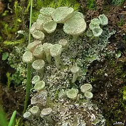 - ^ a b c d Kristinsson, Hordur (1971). "Morphological and chemical correlations in the Cladonia chlorophaea complex". The Bryologist. 74 (1): 13–17. doi:10.2307/3241749. JSTOR 3241749.