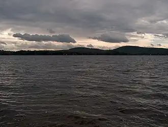 Great East Lake is an 1,825-acre (7.4 km2)[2] water body located in Carroll County, New Hampshire, and York County, Maine, in the United States. The lake is shared by the towns of Wakefield, New Hampshire, and Acton, Maine, with 45% of its surface area in Acton and 55% in Wakefield.[4] The lake is the farthest upstream of the five headwater lakes of the Salmon Falls River, a tributary of the Piscataqua River. Water from Great East Lake flows out its dam and through the 800-foot (240 m) Newichawannock Canal into Horn Pond, then into the Salmon Falls River below Horn Pond.