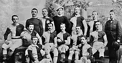 The club continued to recruit for 1884–85, resulting in an entire side of imported players.[22] The side made Great Lever one of the top two or three sides in the country, with the first match of the season being an easy win over Cup holders Blackburn Rovers.[23] The club followed this up with a 6–0 win over Derby County in the latter's first-ever match.[24]