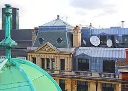 Great Portland Street station opened as Portland Road on 10 January 1863 as a station on London's then Metropolitan Railway. The station was renamed Great Portland Street in March 1917.[37] The present station building, designed by Charles Clark, is of 1930 date and is constructed from cream faience tile with a slate mansard roof.[38]