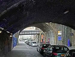 Great Suffolk Street is a street in the Southwark area of London.[1] It runs from the north at Southwark Street to Borough High Street, crossing Union Street and Southwark Bridge Road on the way. At its southern end it becomes Trinity Street. It takes its name from the former historic residence of the Dukes of Suffolk.[2] On John Rocque's Map in the mid-eighteenth century it is shown as Dirty Lane while its northern section continued to be known as Gravel Lane. During the English Civil War the Lines of Communication fortifications included a bulwark in Gravel Lane. The White Hart Pub was built in 1882, sharing its name with an older tavern some way to the east which was demolished in the 1870s. Its northern end is close to the Tate Modern gallery on Bankside. The Africa Centre is based in the street.