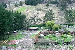 Green Gulch Farm Zen Center, or Sōryu-ji (蒼龍寺 Green Dragon Temple) is a Soto Zen practice center located near Muir Beach, California, that practices in the lineage of Shunryu Suzuki. In addition to its Zen training program, the center also manages an organic farm and gardens. Founded in 1972 by the San Francisco Zen Center and Zentatsu Richard Baker, the site is located on 115 acres (0.47 km2) in a valley seventeen miles (27 km) north of San Francisco[1] and offers a variety of workshops and classes throughout the year. The land is an inholding of the Golden Gate National Recreation Area and has much wildlife within its borders.[1] In addition to meditation retreats, offerings include classes and workshops on the Japanese tea ceremony and gardening.[2] While Green Gulch Farm has a residential monastery and retreat center, guest house, and conference center,[3] it has also become recognized as a place where organic farmers can come to learn the tools of their trade.[4] One of the original architects of the gardens at Green Gulch was the renowned late horticulturist Alan Chadwick—who had introduced the biodynamic farming techniques influenced by Rudolf Steiner on the farm.[4] Chadwick's grave is marked by a stupa on site.[1] Author Fenton Johnson writes that Green Gulch Farm, "...serve[s] as a model for living on the land in the context of a Zen Buddhist practice."[5]