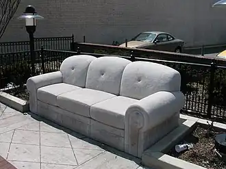 Greenwood Park Sofa, also known as Limestone Sofa,[1] is a 2004 limestone sculpture of a couch by Robert Huff, installed in Columbus, Ohio.[2] Formerly installed in its namesake pocket park on High Street for a decade,[2] the artwork "became the locus for reports of public urination, intimidation and petty theft on the sidewalk and in the parking lot behind it", according to Tracy Zollinger Turner of the Short North Gazette. The work was later restored by the artist and installed outside the Cultural Arts Center in Downtown Columbus.[3]