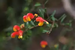 Grevillea alpina is a species of flowering plant in the family Proteaceae. It has several common names, including mountain grevillea, alpine grevillea, and cat's claws. It is endemic to Australia. It is not limited to alpine environments, and in fact is less common at high elevation than low. The species is variable in appearance, with five general forms described: small-flowered, Grampians, Northern Victorian, Goldfields, and Southern Hills forms. It is found in dry forests and woodlands across Victoria and into southern New South Wales. Some forms of the plant are low to the ground, and some become a spreading shrub. The flowers come in many colours, from white to green to shades of red and pink, or a pattern of several colours. The curled flowers are 1 to 3 centimetres (0.39 to 1.18 in) in length. It is attractive to nectar-feeding insects and birds.